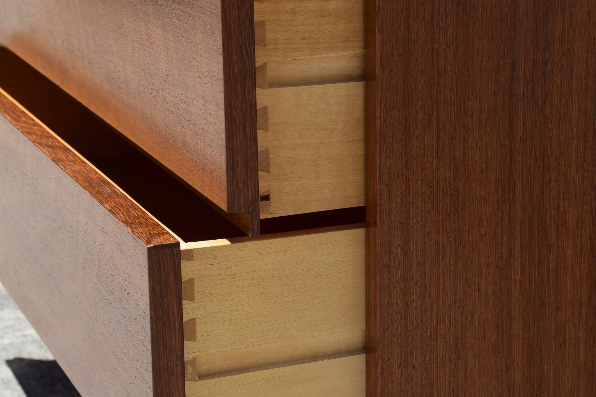 Beautifully crafted and constructed blackbean chest of drawers produced locally by Erik Petersen’s DQF Brisbane.