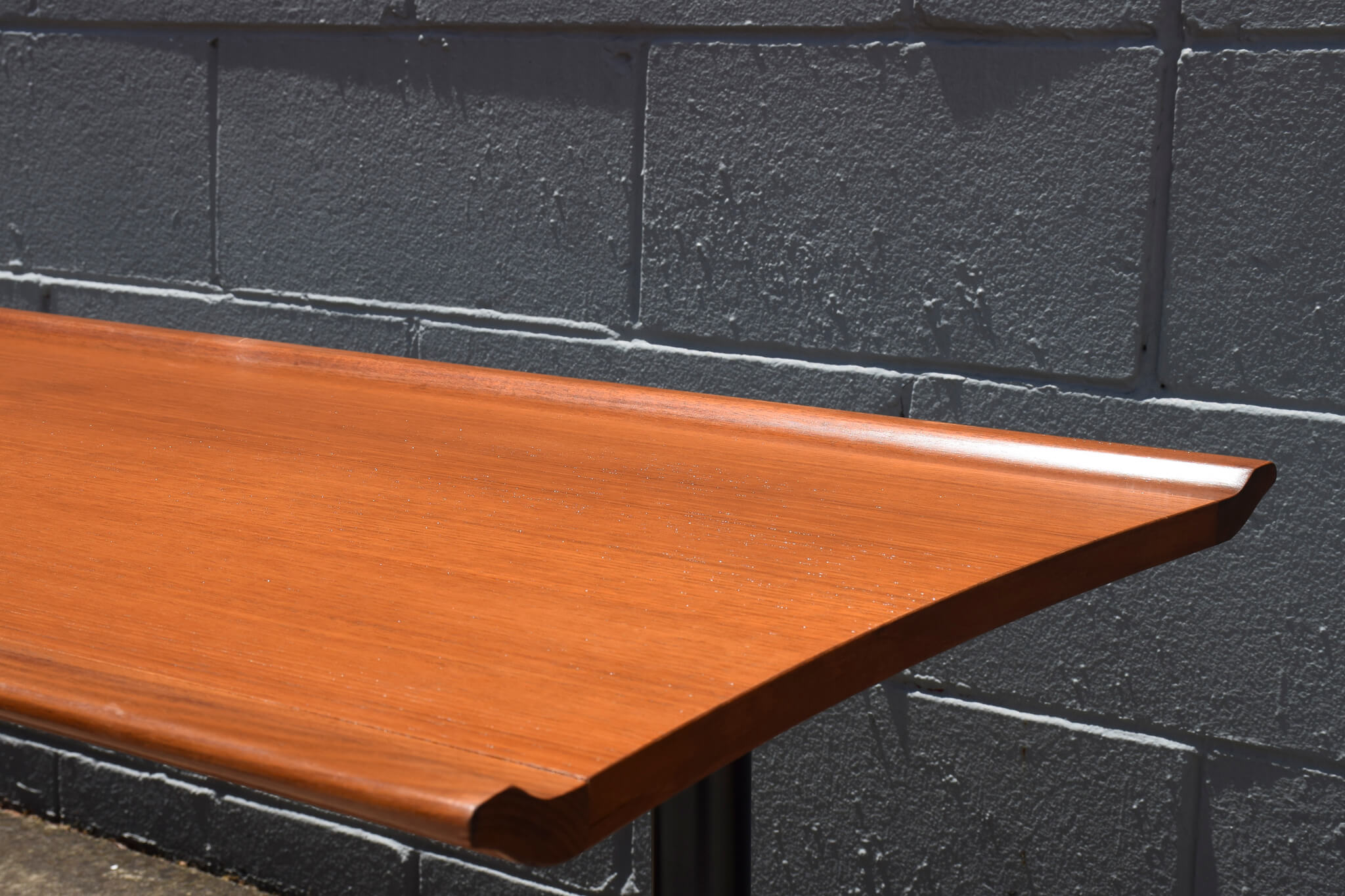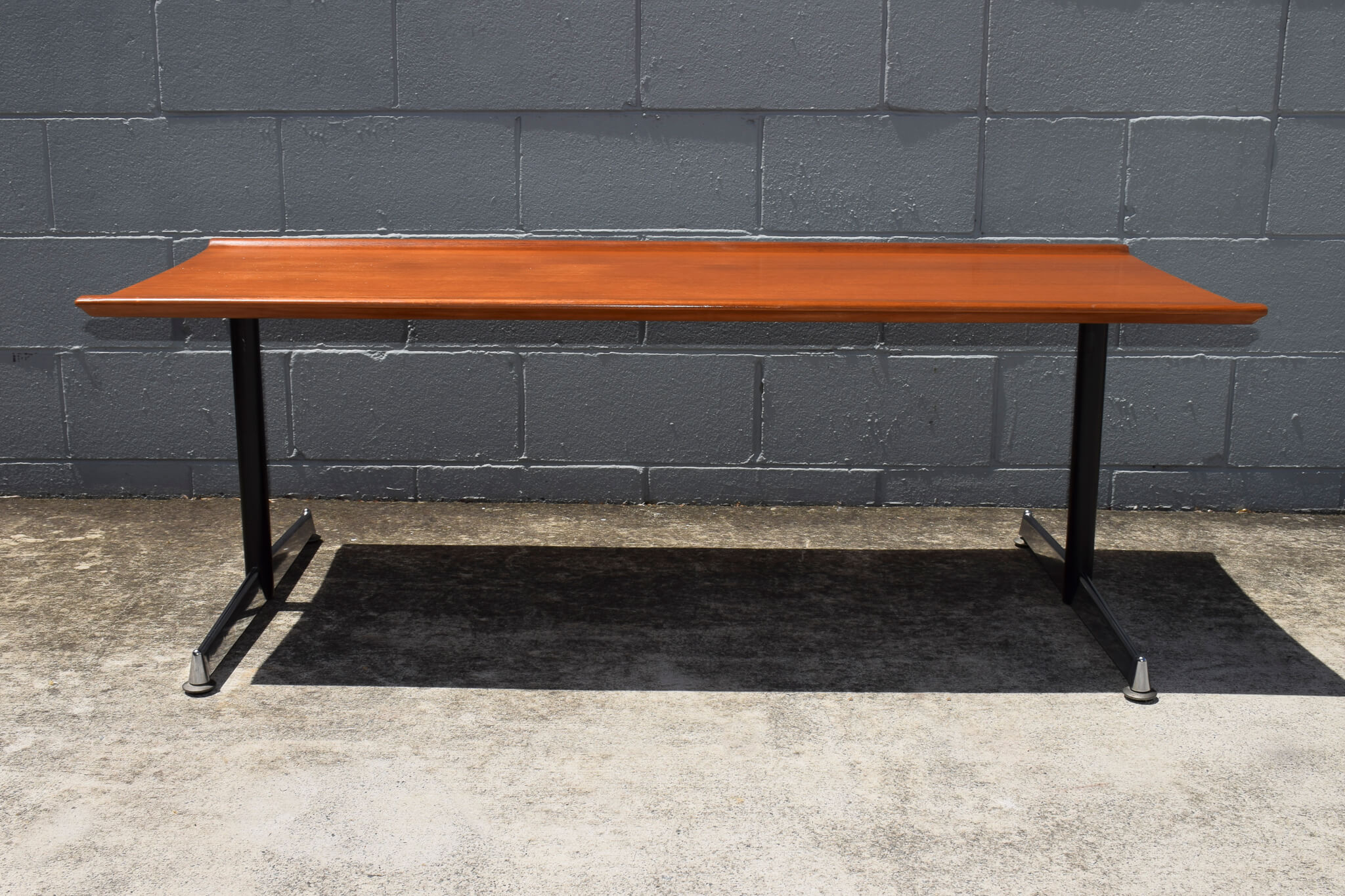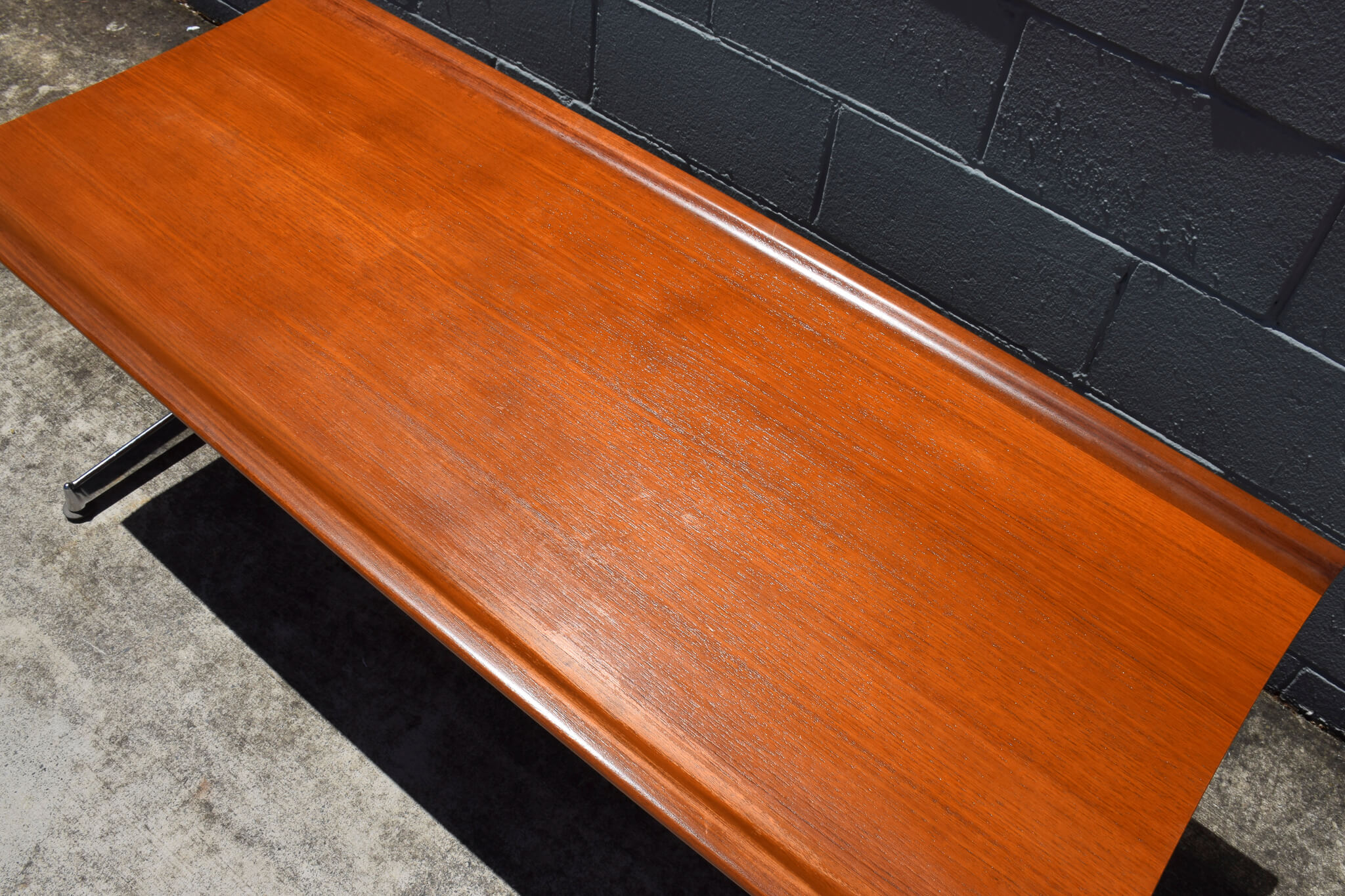 Such a unique find, we’ve never had one of these beauties before by renowned Aussie furniture producers Fler Furniture. Beautifully designed and hand crafted, it features a stunning timber veneer grain with curved edges on black and chrome legs. A statement piece for any living space.