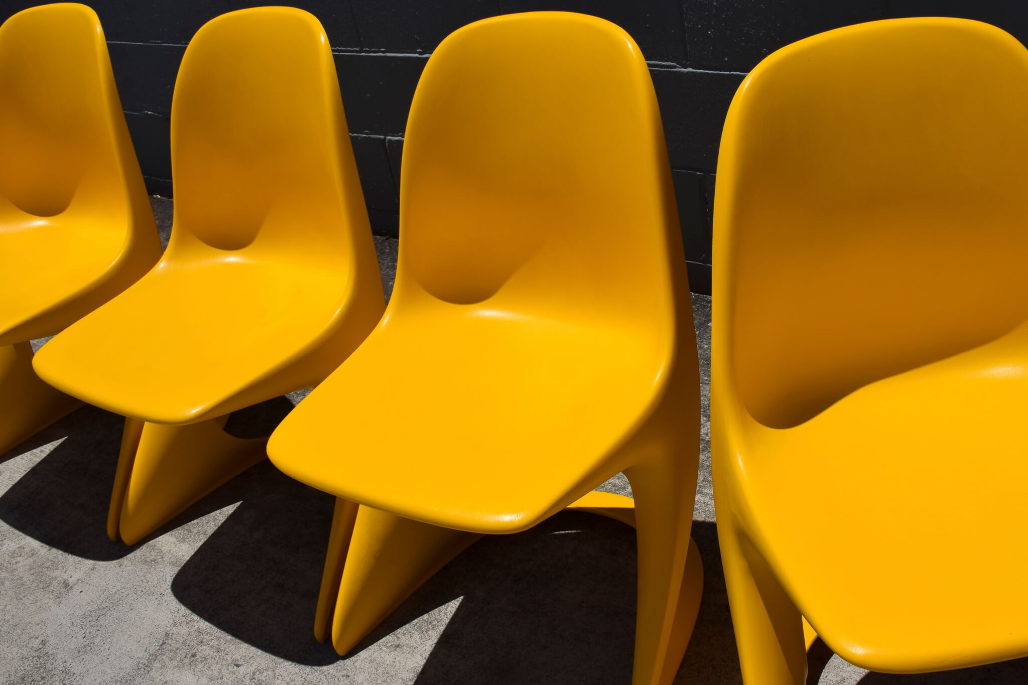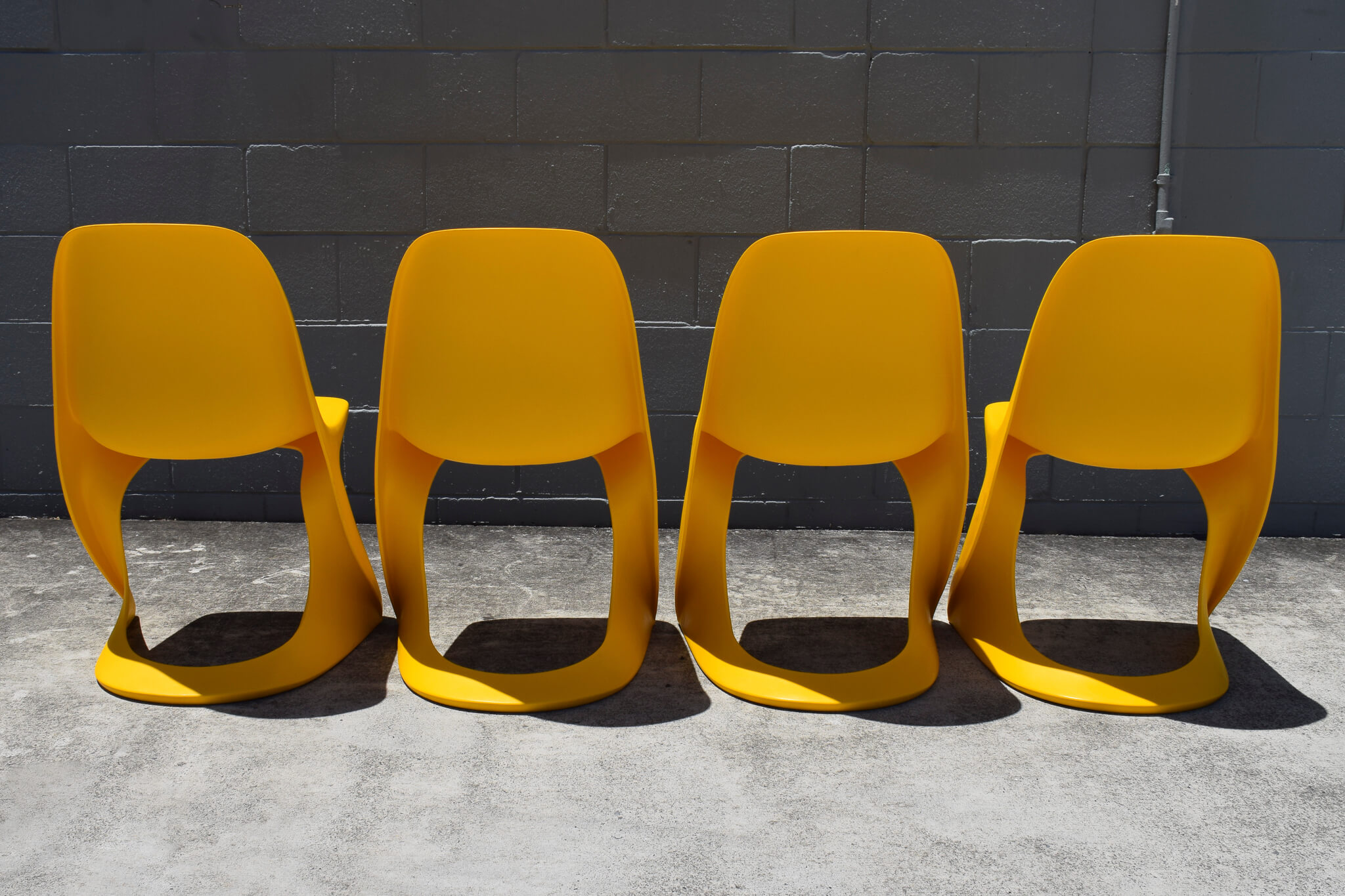 A very rare find, these chairs were made in Australia by Winton Plastics. Stunning timeless design, all chairs easily stack on top of each other for easy transporting or storing.