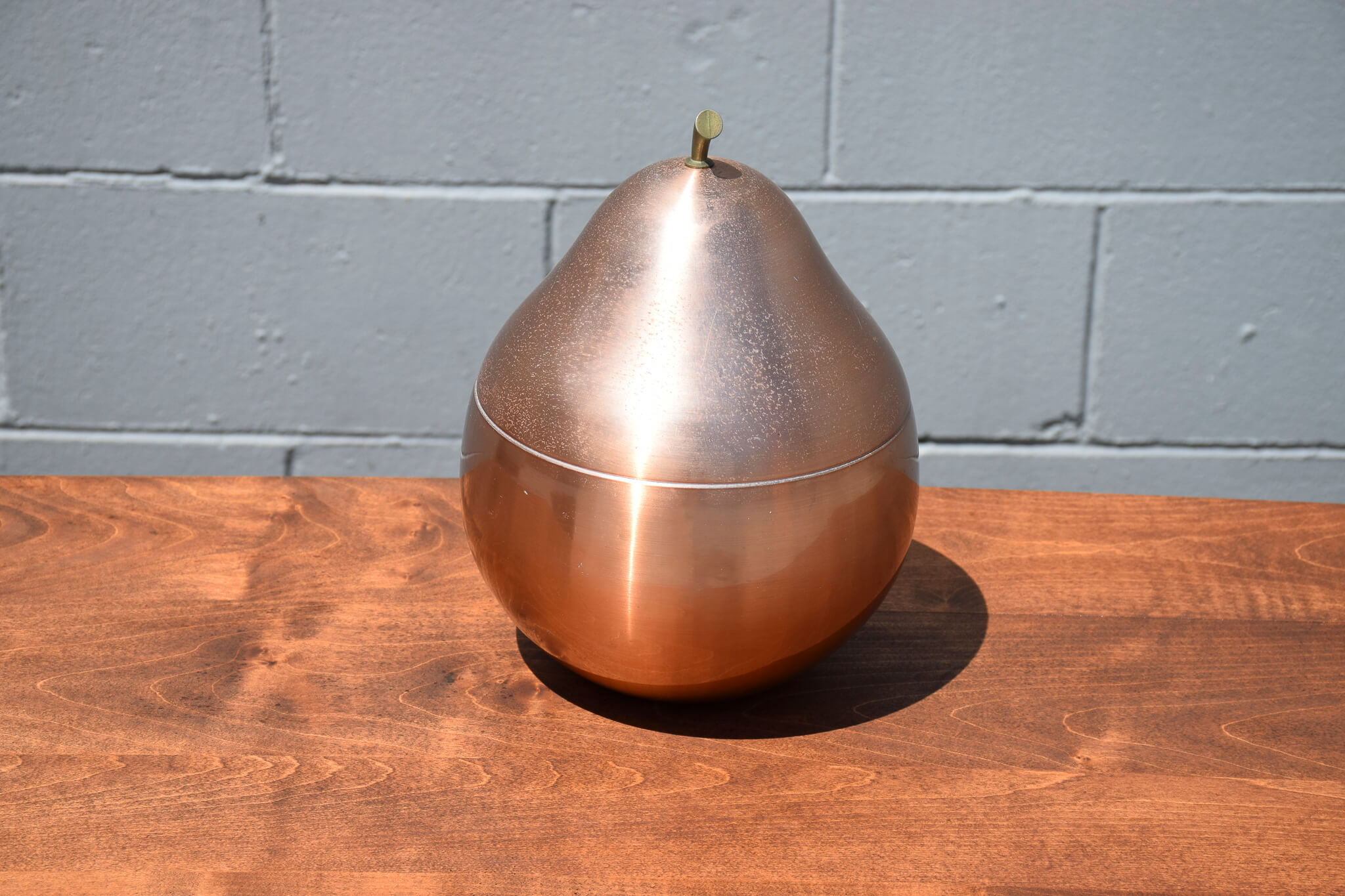 Becoming increasingly harder to find, this gold anodised pear ice bucket screams mid century design and would make a great addition to any drinks trolley or bar.