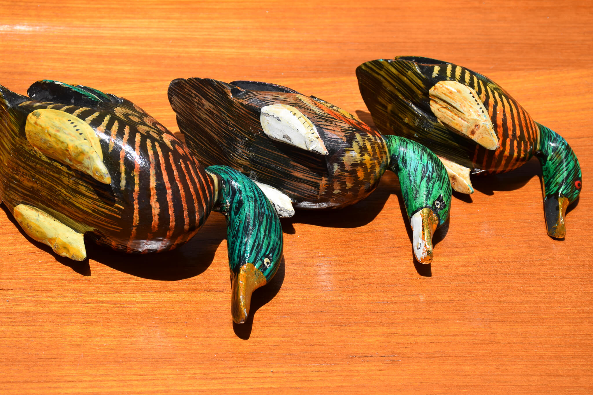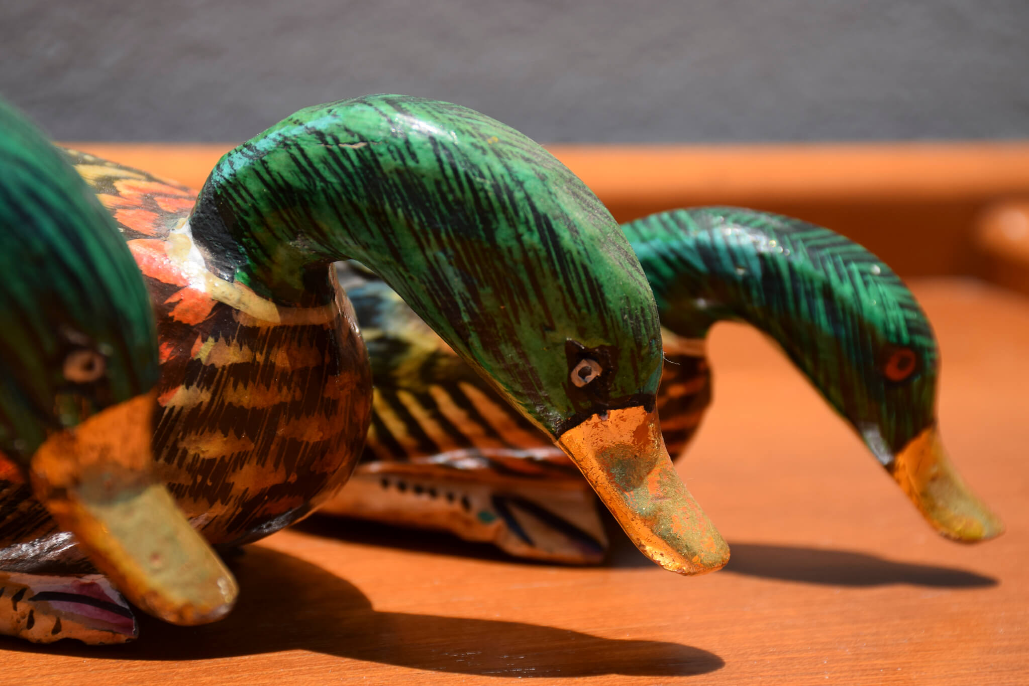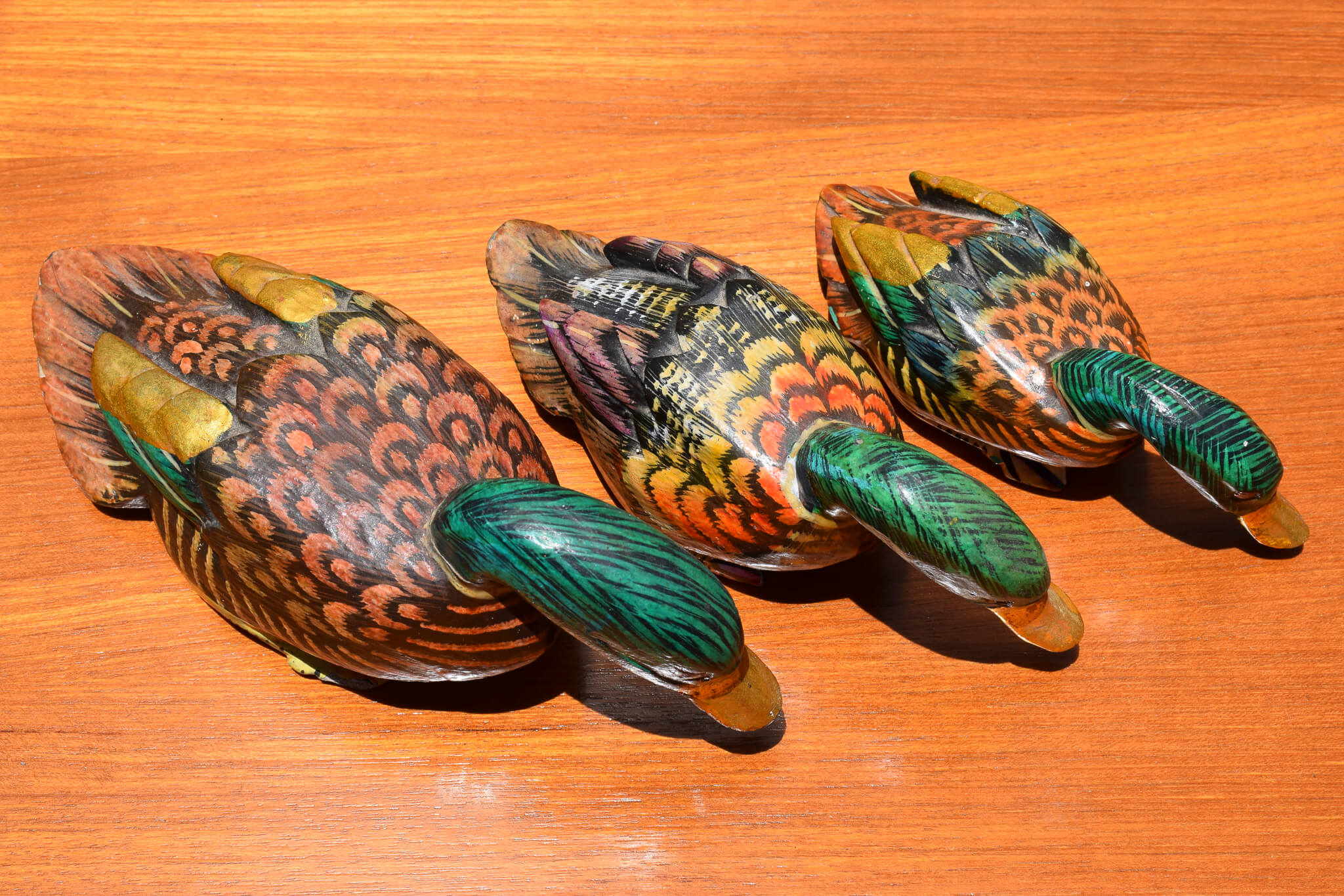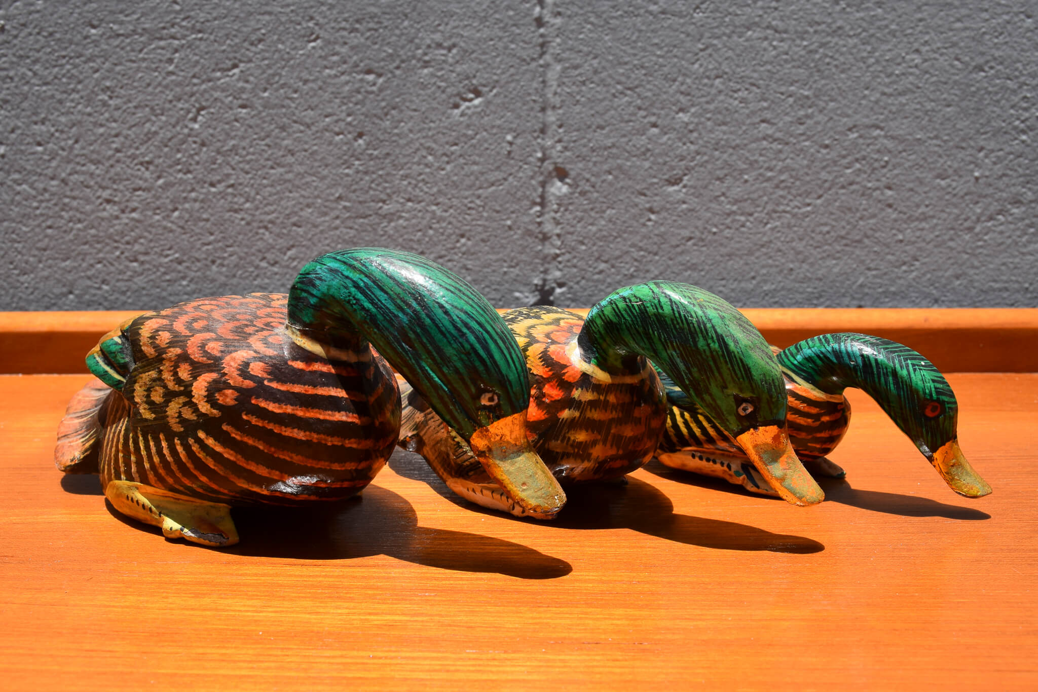 Looking for a piece of quintessential mid century design then look no further than this incredibly unique and rare wooden duck mallard set.
