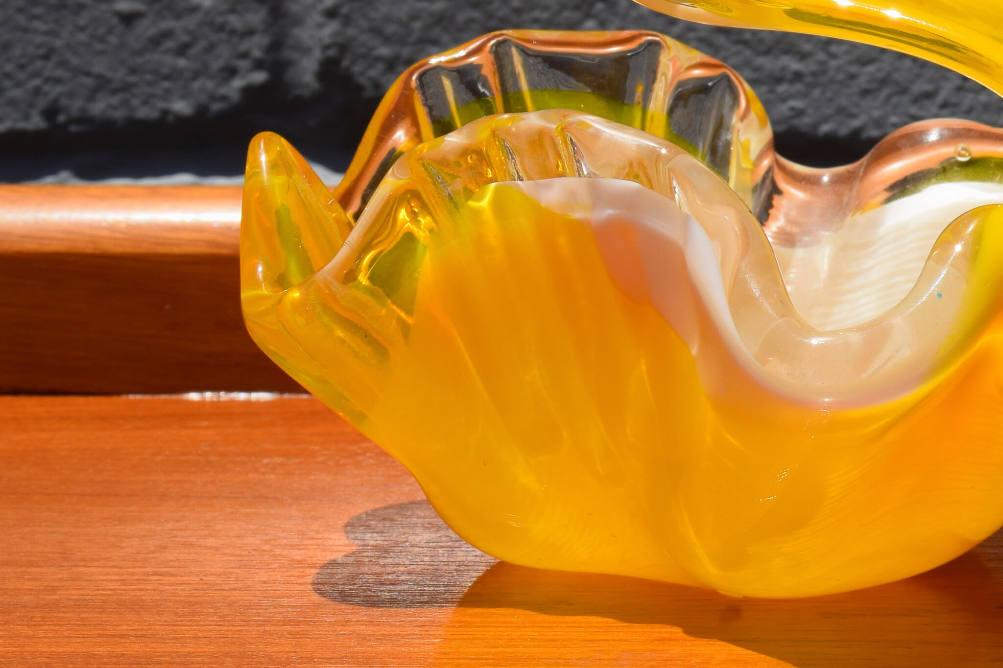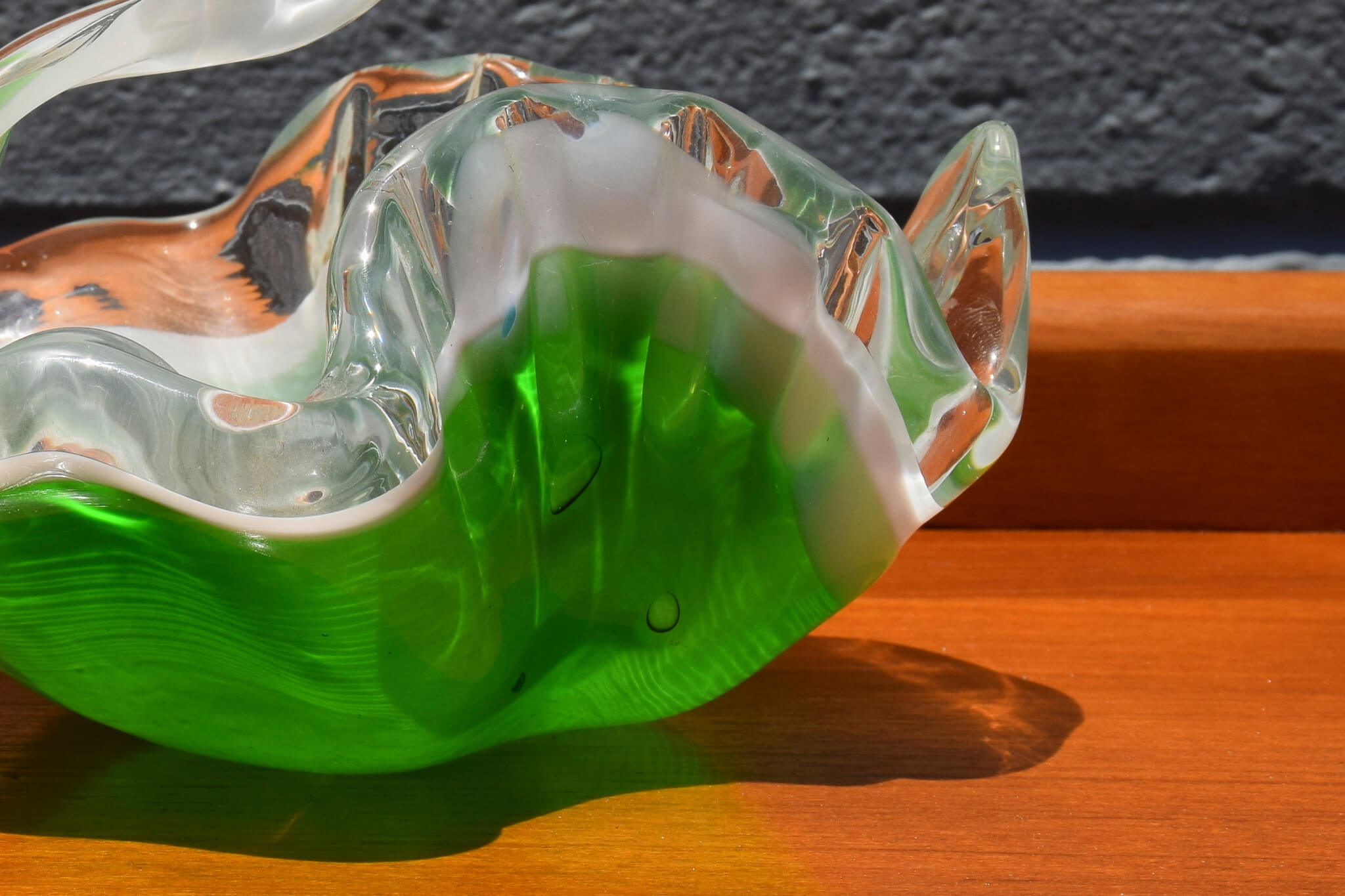 The perfect accompaniment to any home decor, these stunning art glass swans feature a bright green and yellow colour.