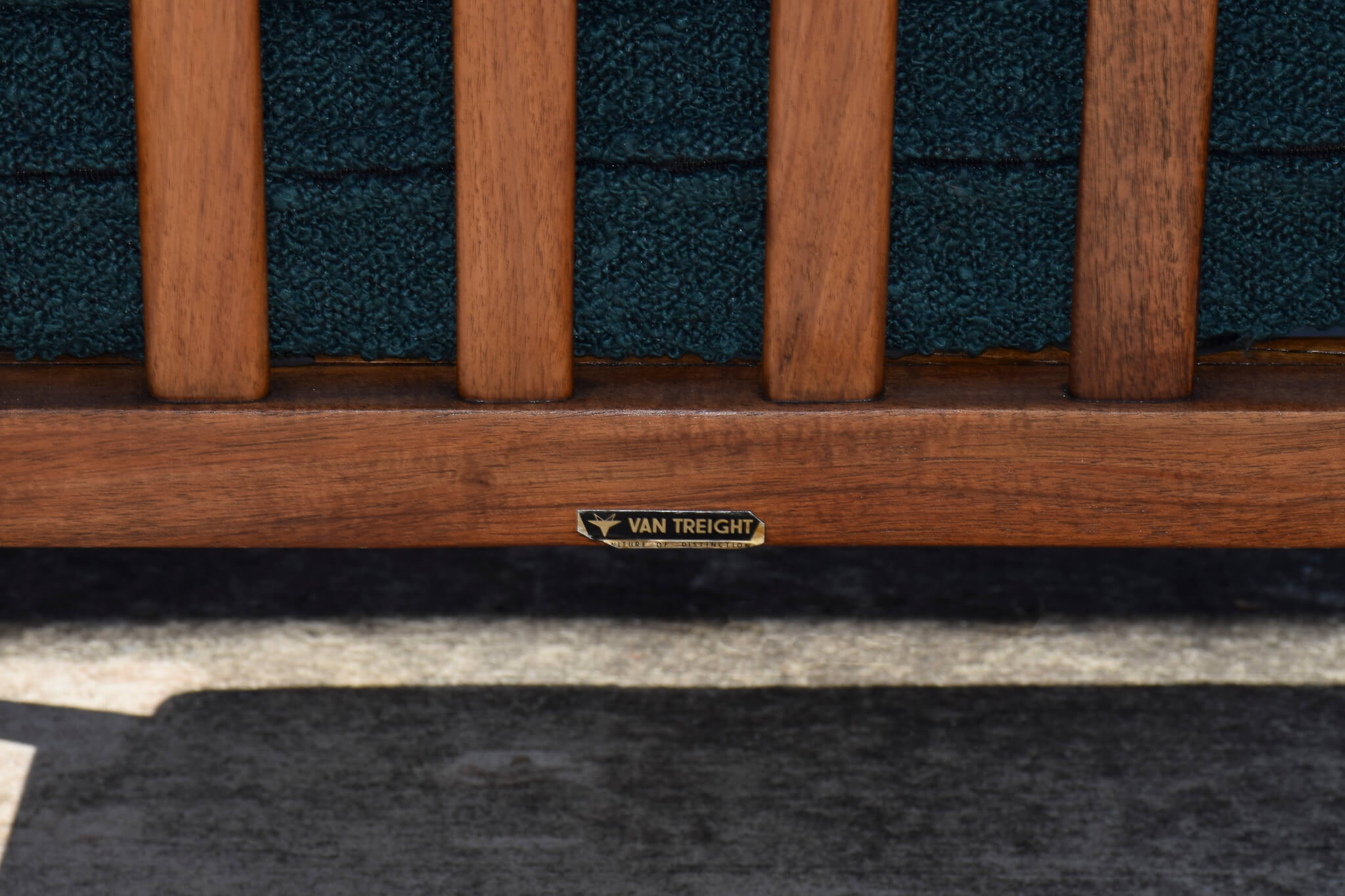 One of the best and most iconic Van Treight designs, this armchair features stunning sculpted armrests and timber slatted back details. A real Australian mid century statement piece.